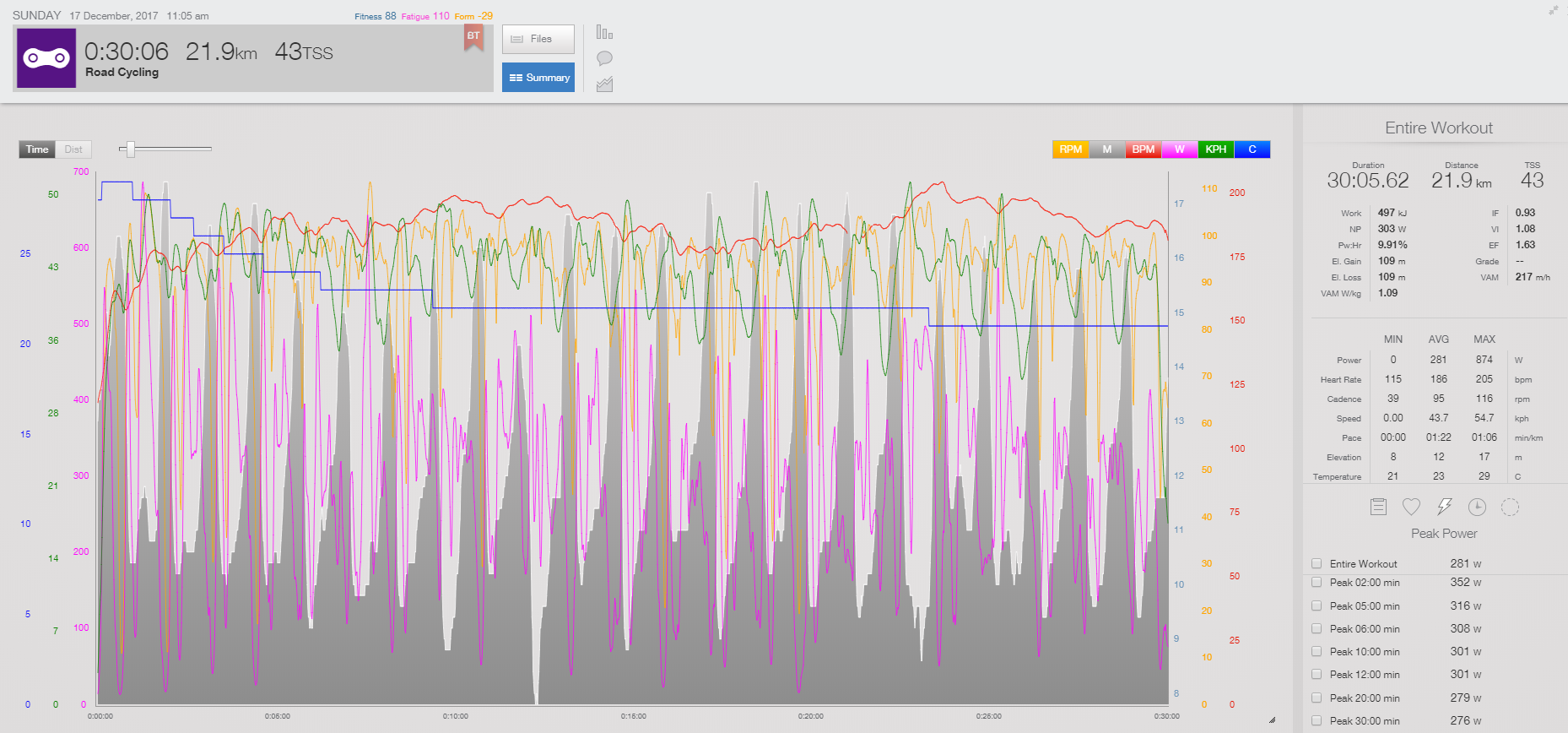 | M | 4.68 w/kg | 5.05 w/kg | 1.08 | 43.7 km/hr | 8.65 | 30mins |